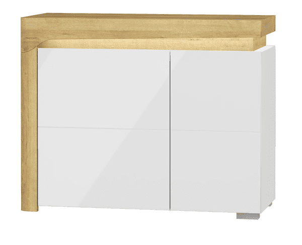 The Grenald sideboard boasts a contemporary design that complements any modern home. The clean lines of the white gloss finish are perfectly accented by the warm, natural look of the oak impression, creating a balanced and visually appealing piece. The integrated LED lights add a touch of glamour, illuminating your displayed items and casting a gentle, ambient glow throughout your room. This attention to detail makes the Grenald 2 Door Small Sideboard not just a piece of furniture, but a statement of style.